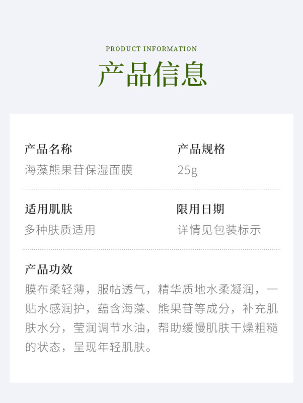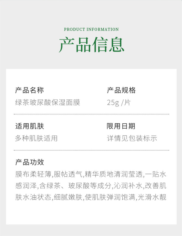 - Product specifications: Green tea hyaluronic acid 25g (new)