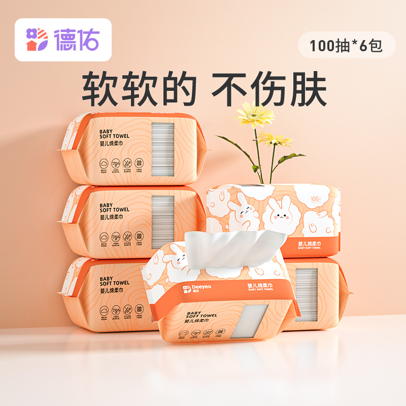 - Specifications: Deyou Baby Rabbit Soft Towel 100 pieces, 6 packs per box