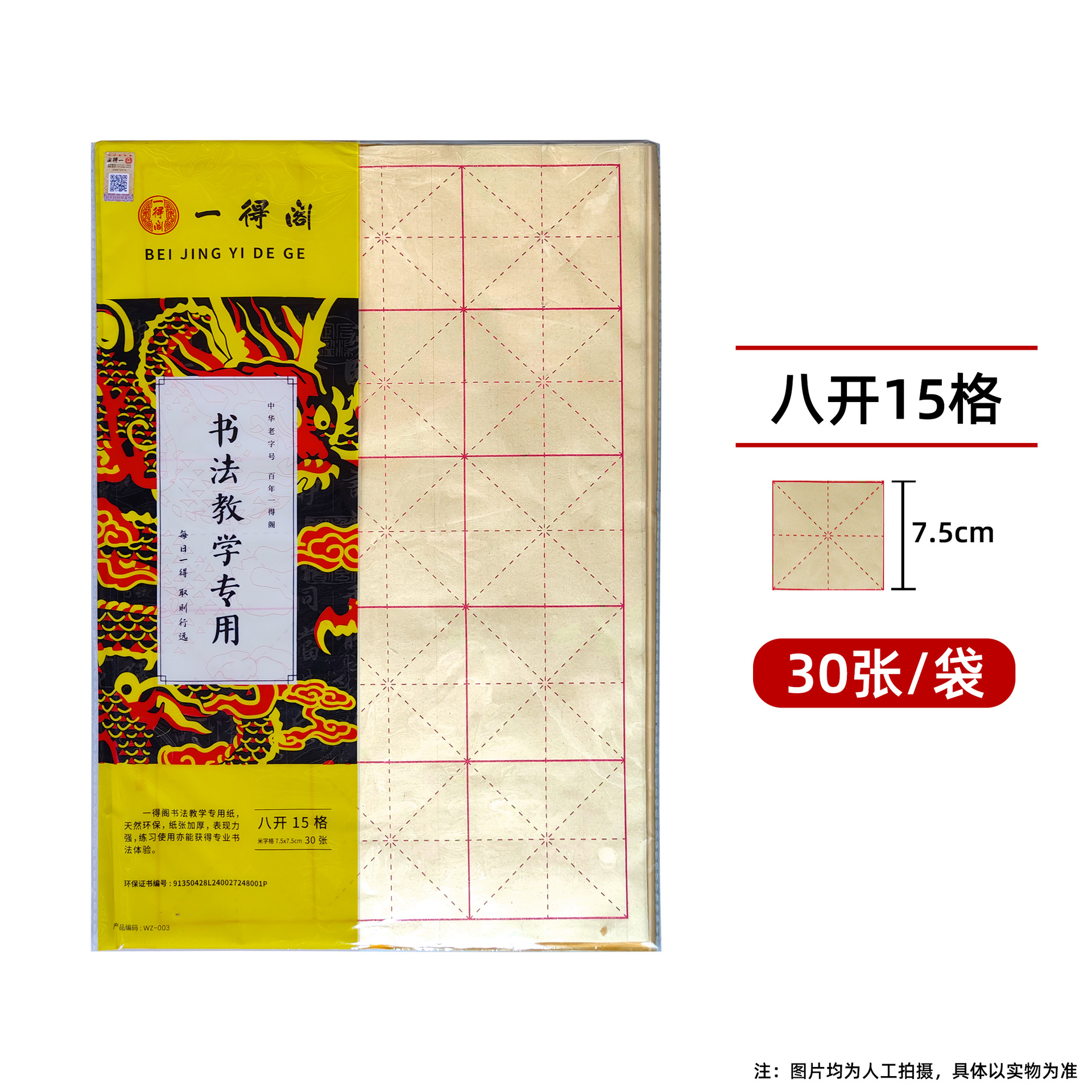 - Specifications: 8-open 15-grid raw edge paper with rice-character grid 7.5*7.5cm [30 sheets/bag]