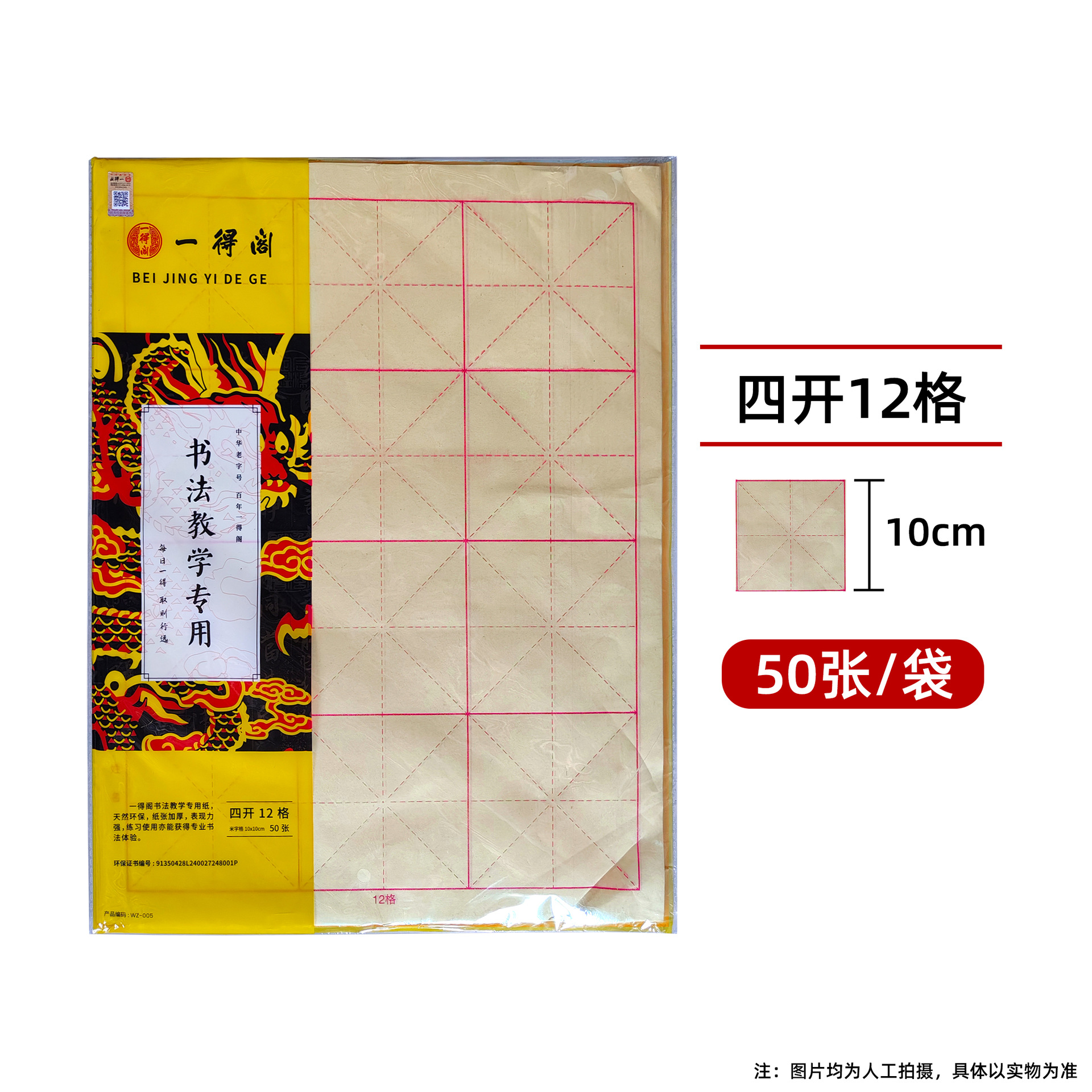 - Specifications: 4-open 12-grid raw edge paper with rice-character grid 10*10cm [50 sheets/bag]