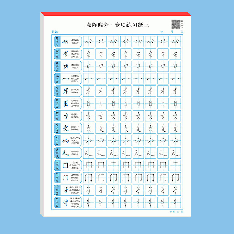 - Specifications: 10 copies of three dot matrix radical practice sheets