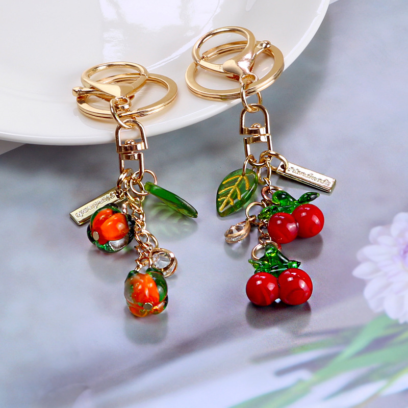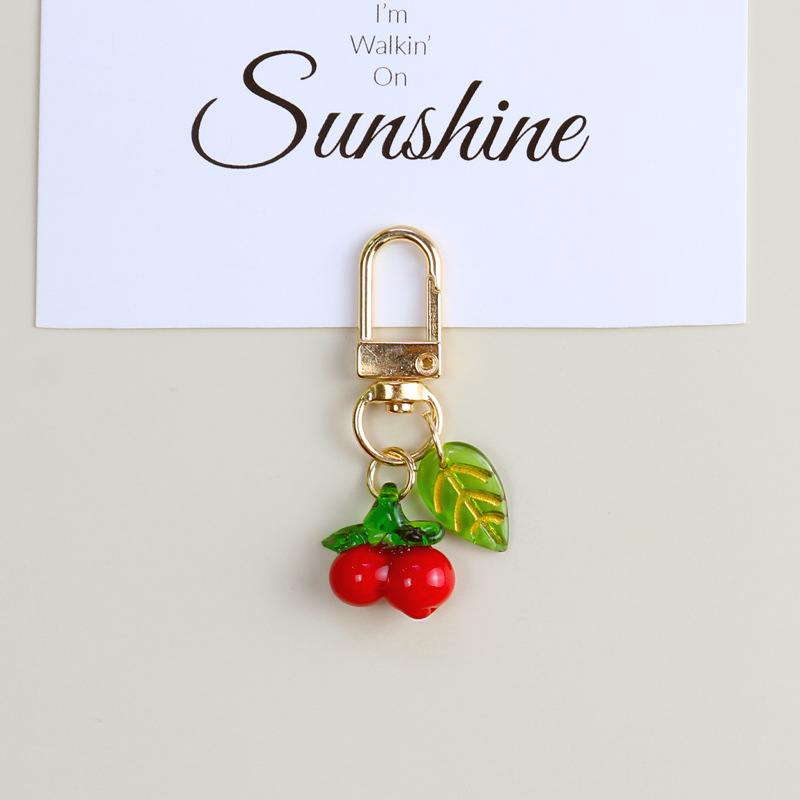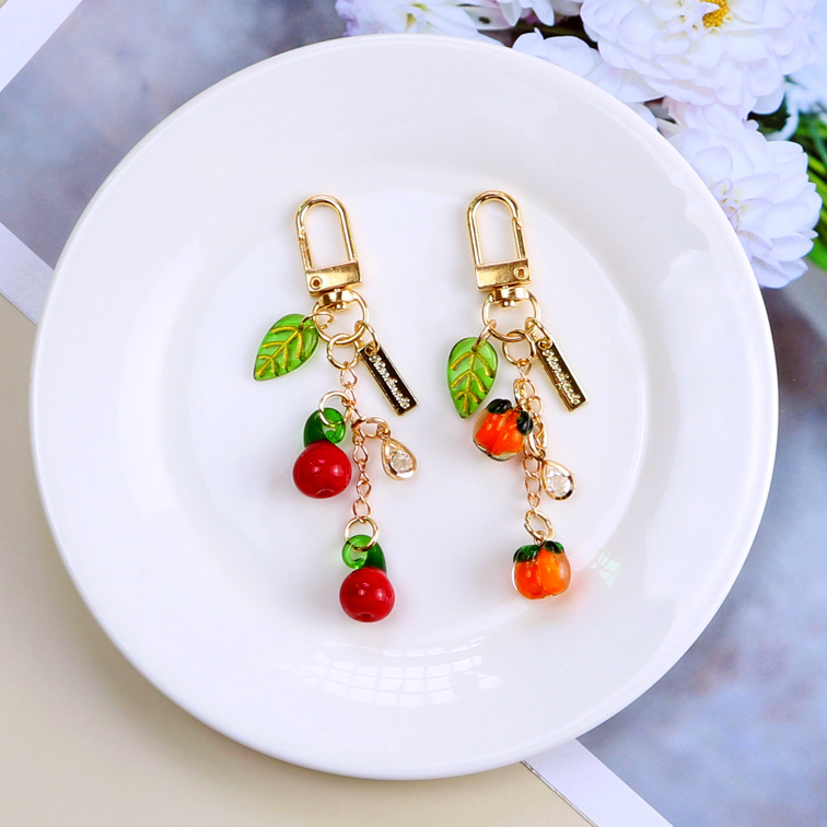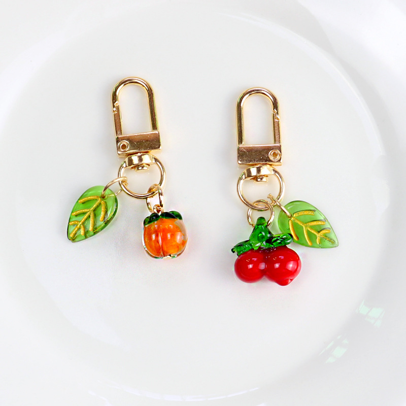 The total length of the key chain is approximately 9.2cm/ Fruit diameter is about 1.3cm/ The small leaves are about 1.8cm long