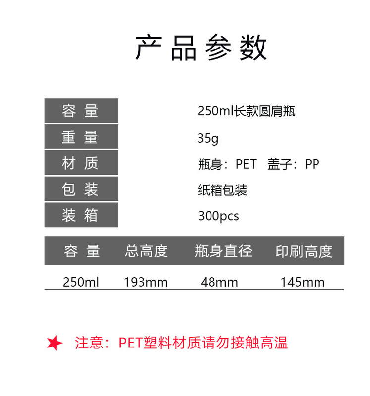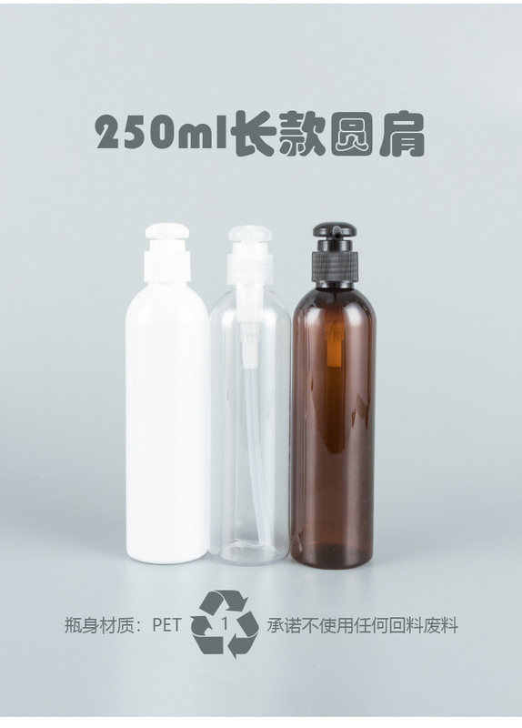 - Specification: 250ml Transparent Long Round Shoulder Bottle