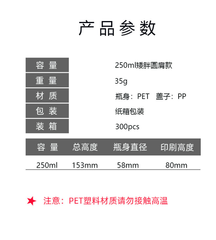 - 規格:250ml透明矮胖瓶