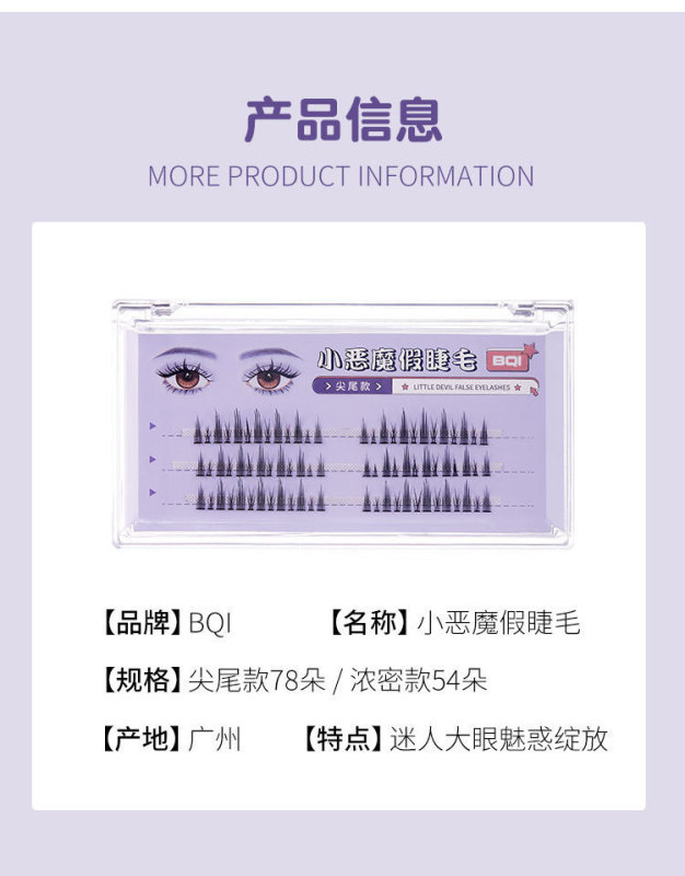 - Specification: Little Demon False Eyelashes (Sharp Tails) - 78 Pieces