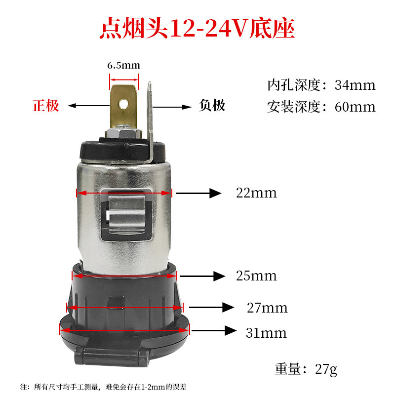 - Specifications: cigarette lighting female base
