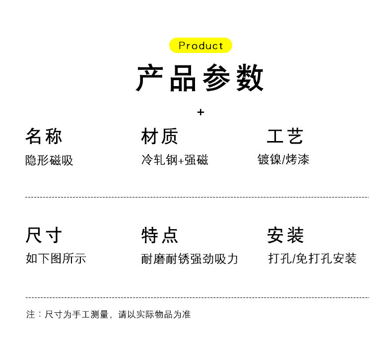 - Specifications: Invisible magnetic suction + screw (nickel plated)
