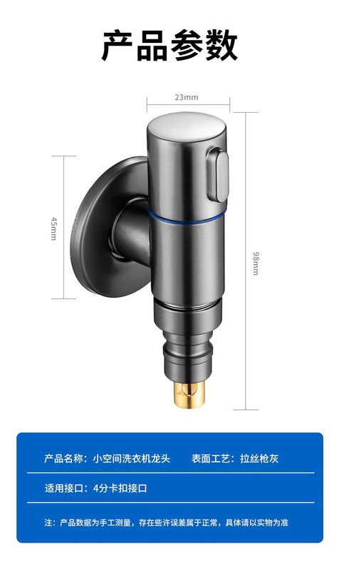 - Specifications: [Gun Gray Model] Stainless Steel Water Stop Short T Washing Machine Faucet