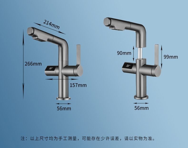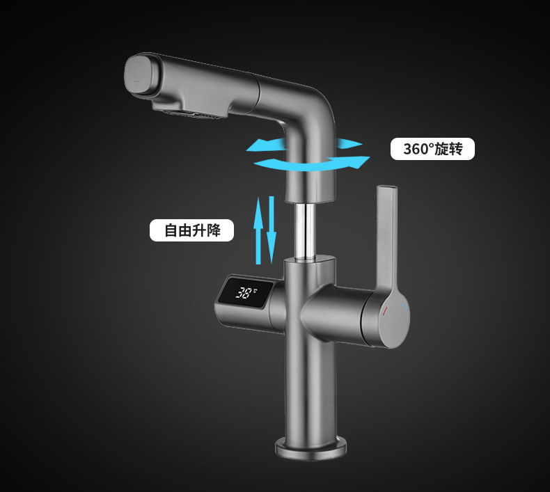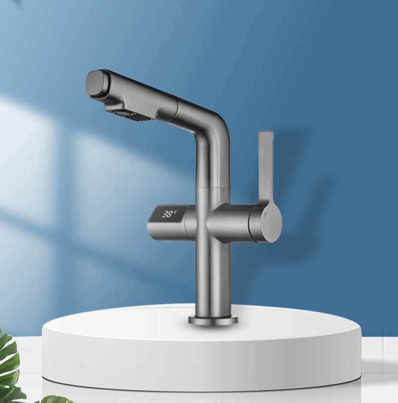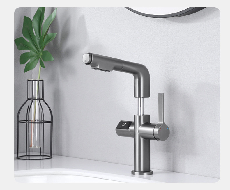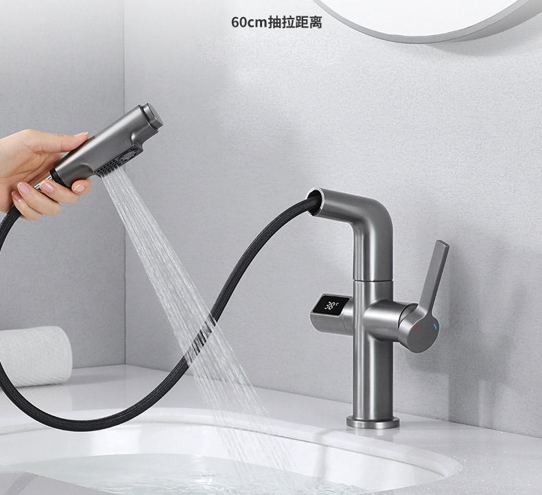 - Model: Copper Gun Gray Digital Pull-out Bathroom Sink Faucet