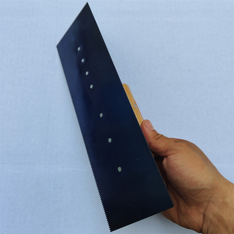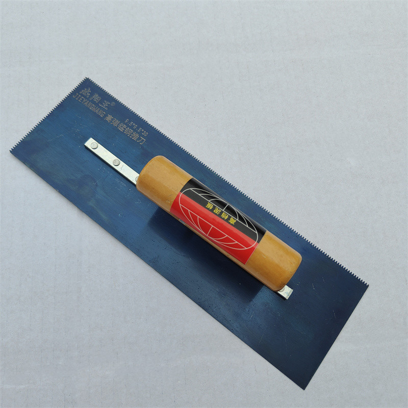 - Specifications: 30cm wooden handle serrated blue steel trowel