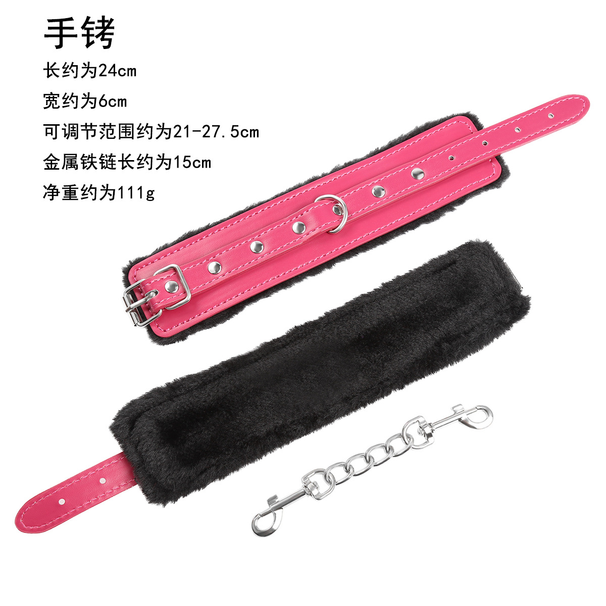 - Specifications: Pink single row pin buckle plush handcuffs