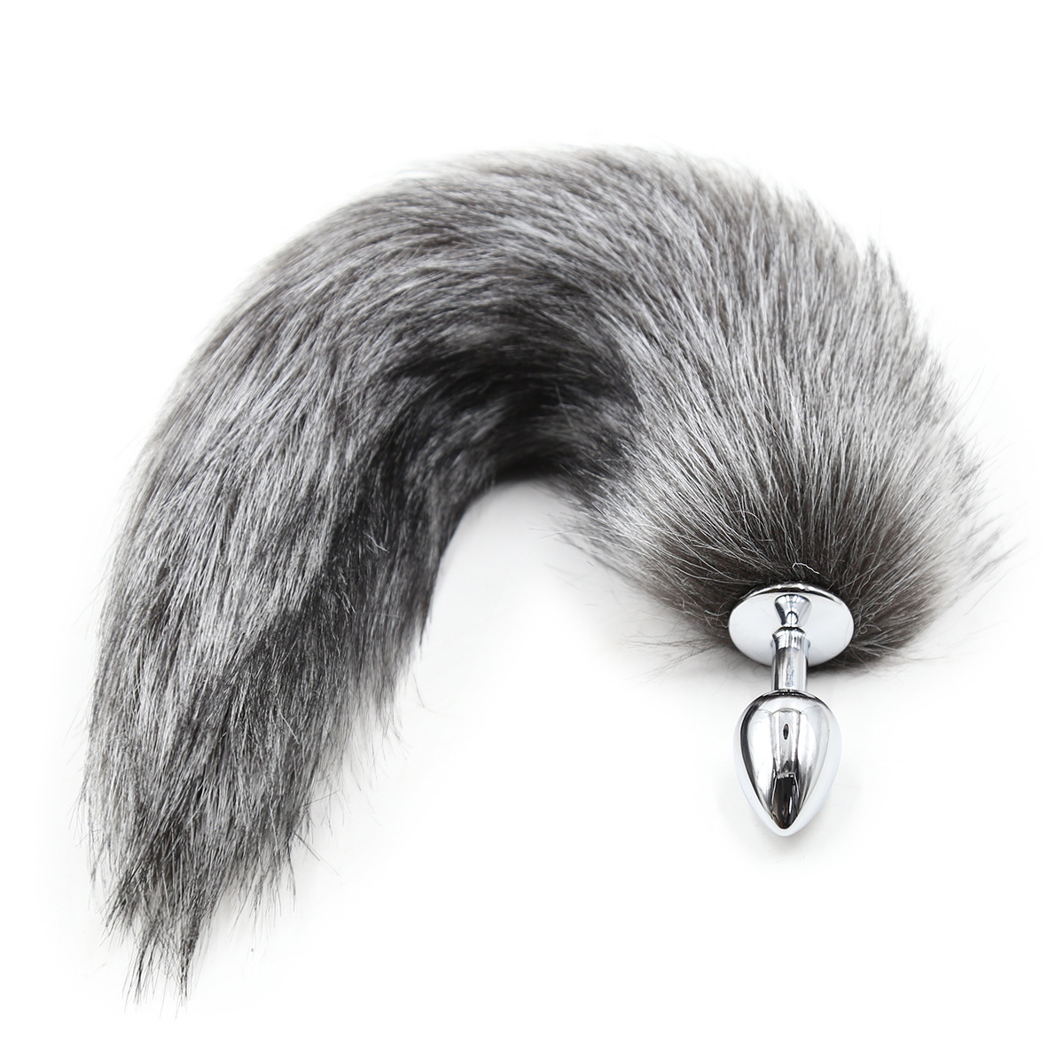 - Specifications: Gray and white pointed artificial hair small metal anal plug