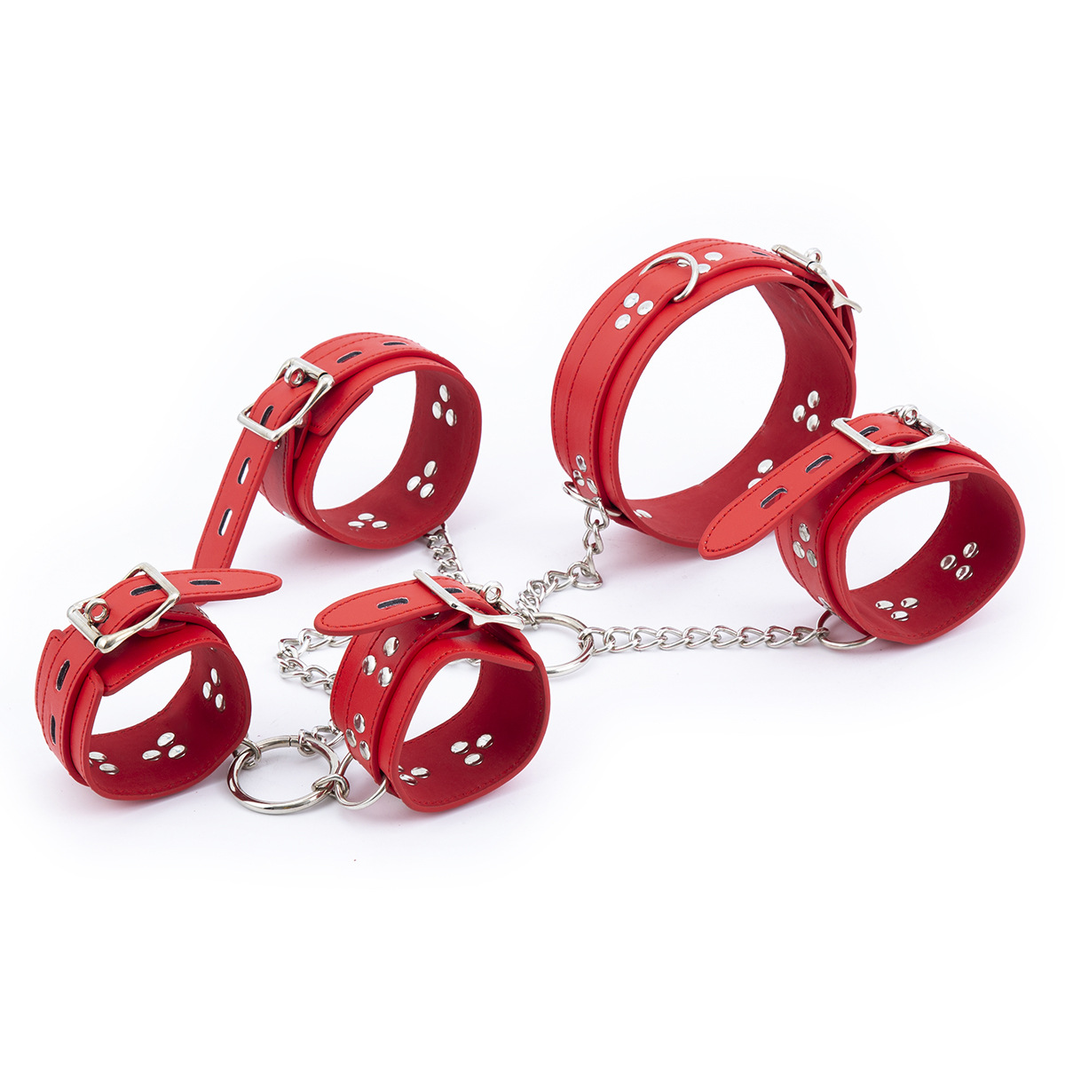 - Specification: Red Leather Lock Cuffs for Hands and Neck