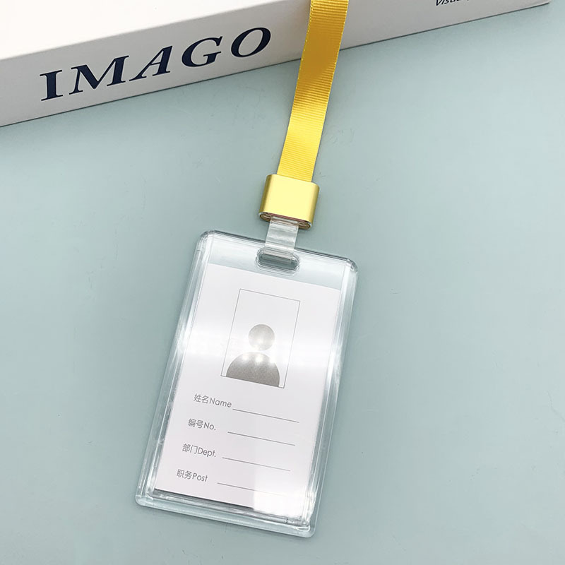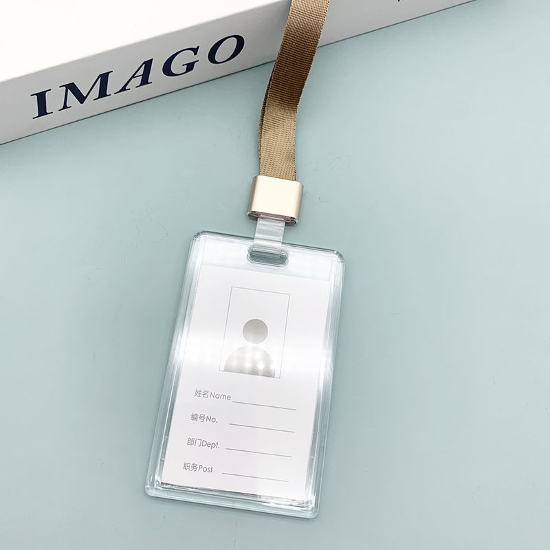 - Specifications: Acrylic card holder (with card) + brown gold-covered long lanyard