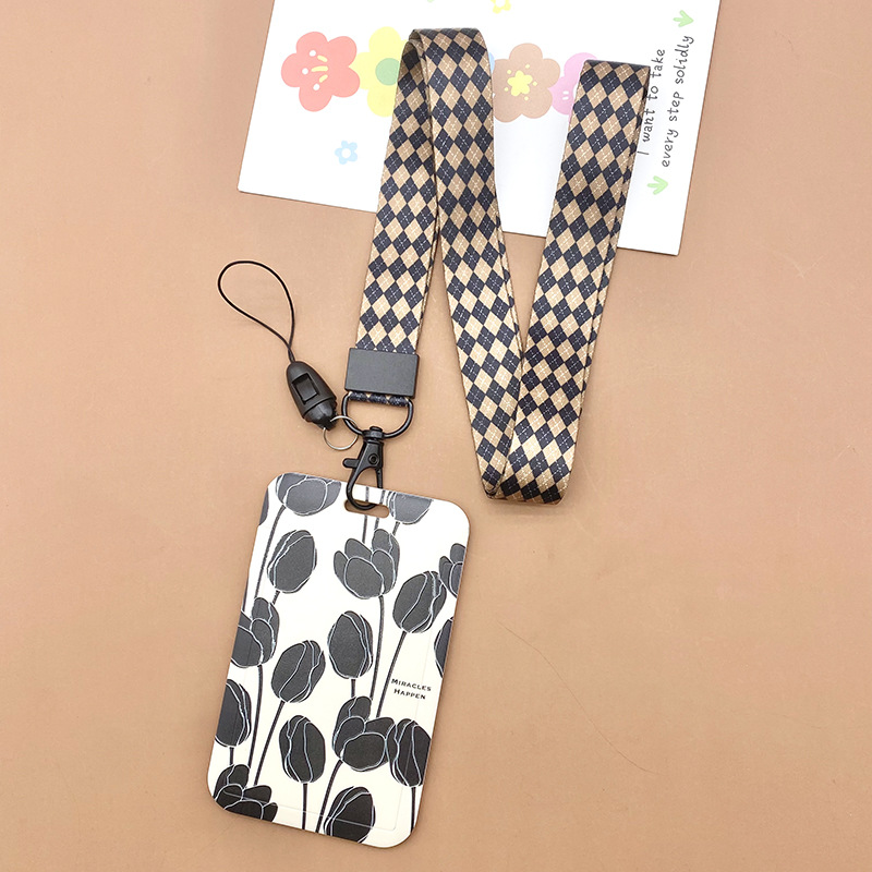 - Specifications: many small black flowers + black and brown diamond long lanyard