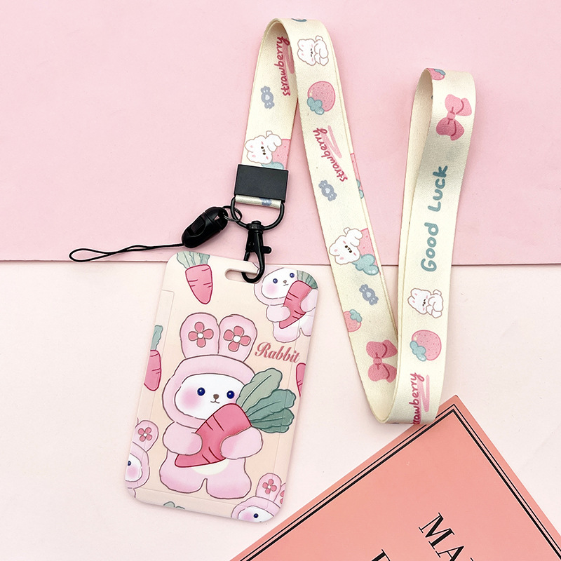 - Specifications: Cute carrot rabbit + huggable strawberry rabbit long lanyard