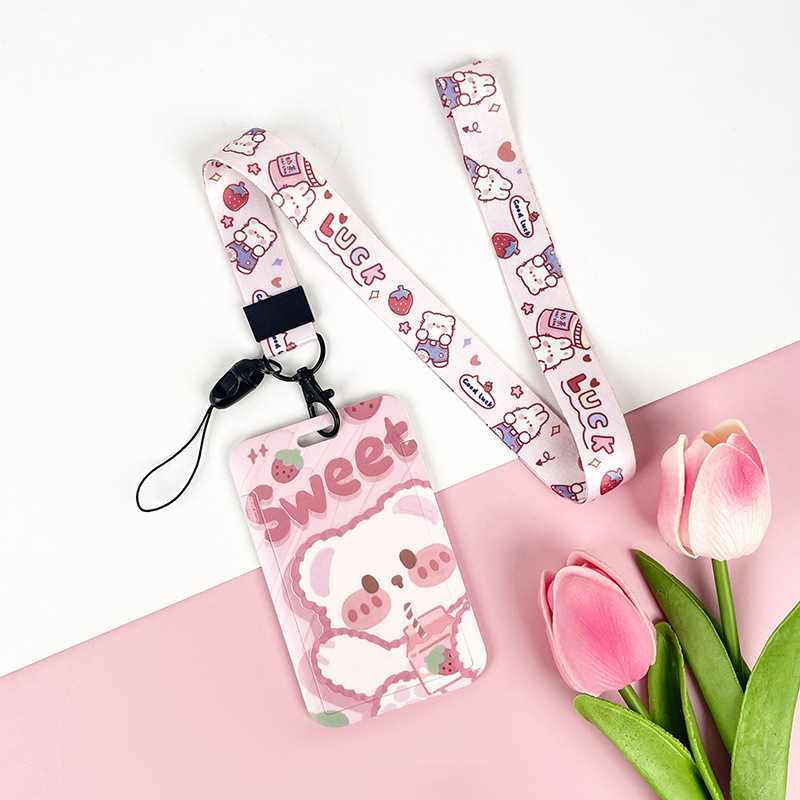 - Specifications: Strawberry milk bear + LUCK rabbit long lanyard