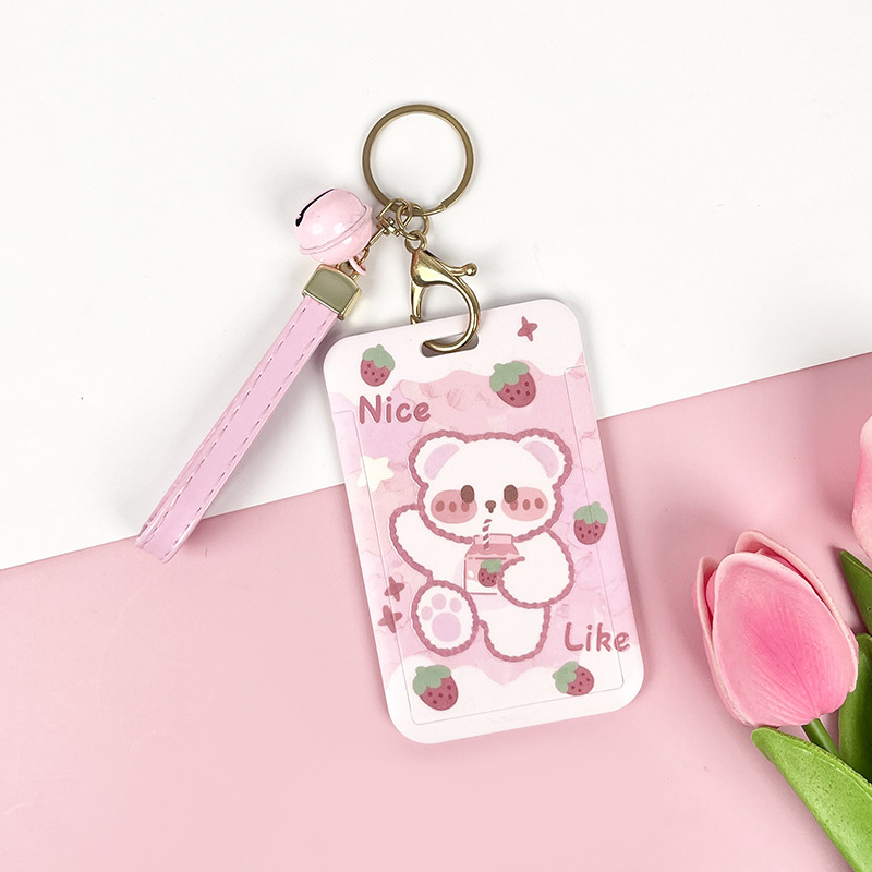 - Specifications: Strawberry milk drinking bear + pink leather rope bell keychain