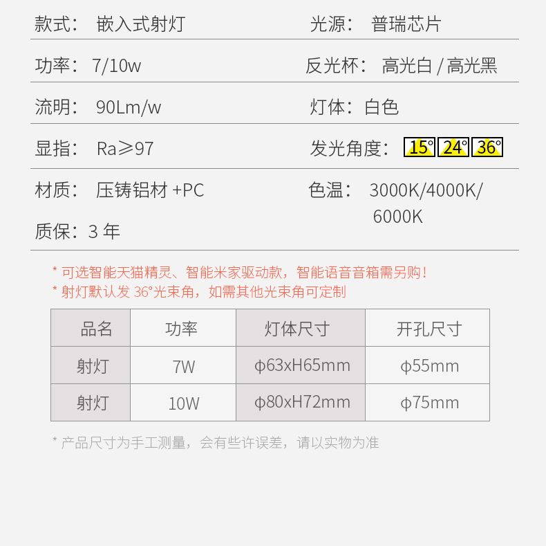 - Power: Bright white cup-10w-opening 75MM