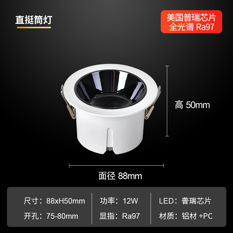 - Power: Open hole 75-80MM white body-matte white cup-12w