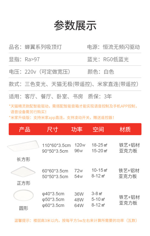- Light source power: American Bridgelux chip-Cicada Wing series-two rooms and one living room