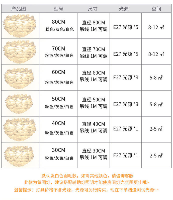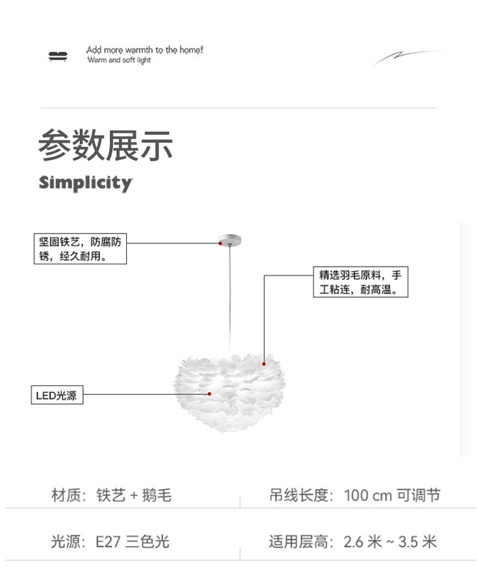 - Lampshade Material: Feather