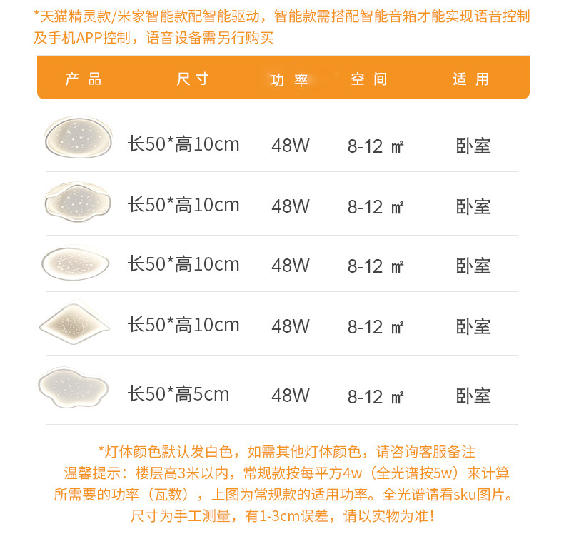 - Light Power: Standard - Star Cloud Shape - White 48W