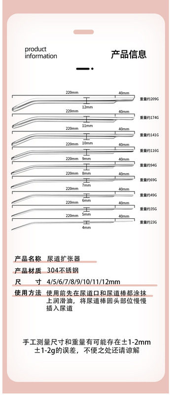 - Product name: Stainless steel urethral plug