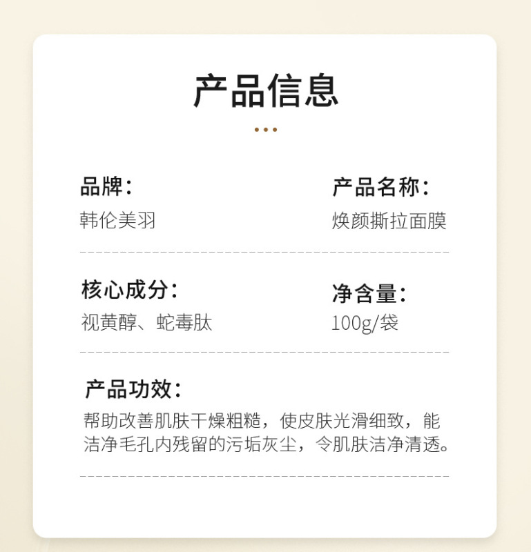- Product name: Han Lun Meiyu Retinol Snake Venom Peptide Gold Mask