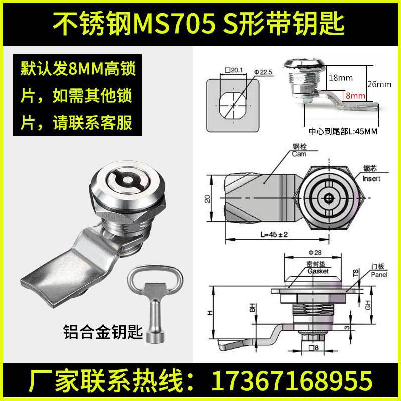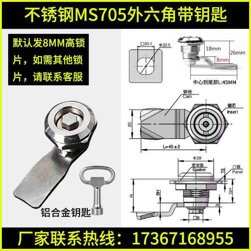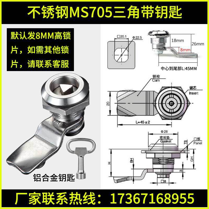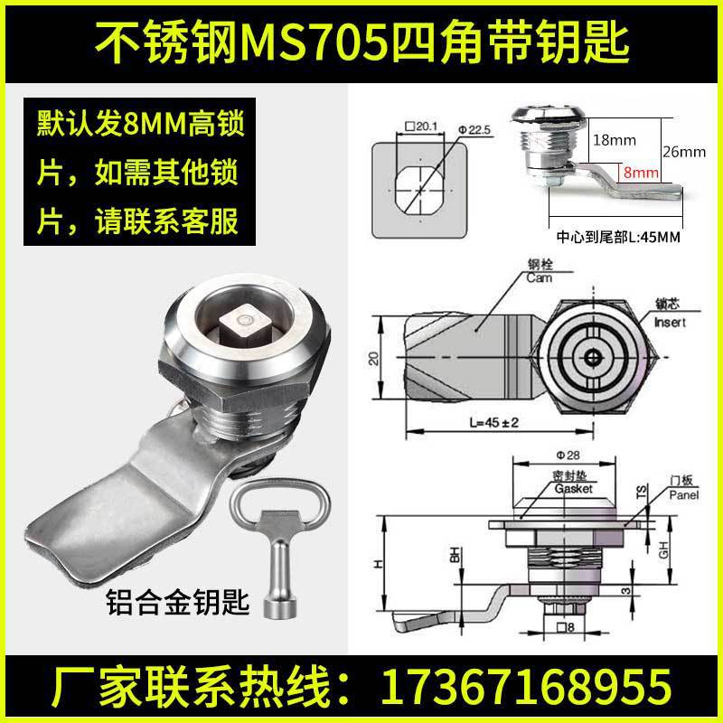 - 規格:不鏽鋼MS705四方帶鑰匙