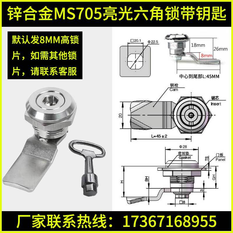 - 規格:鋅合金MS705亮光六角鎖帶鑰匙