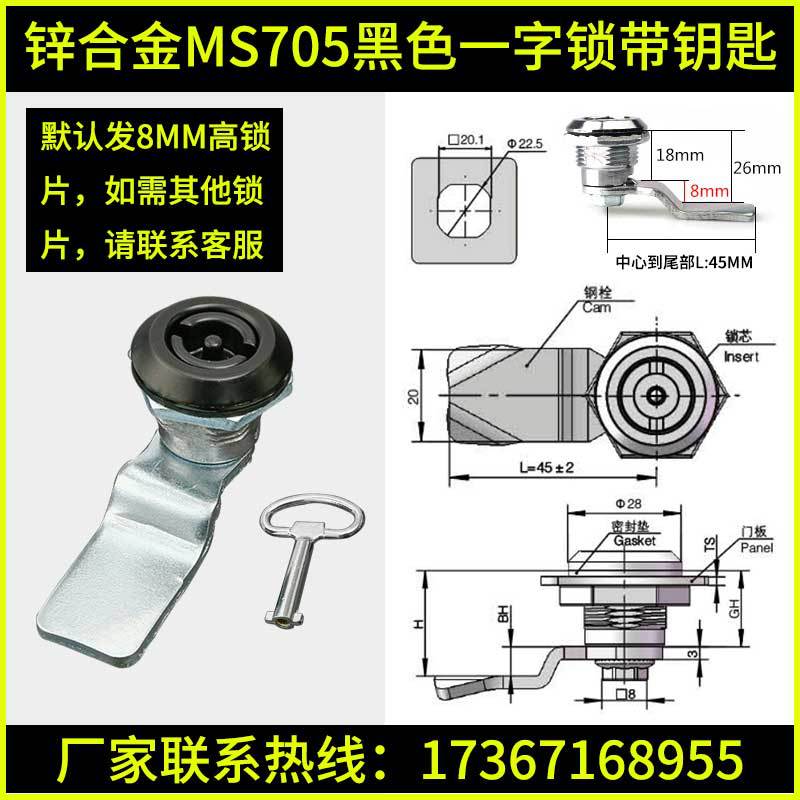 - 規格:鋅合金MS705黑色一字鎖帶鑰匙