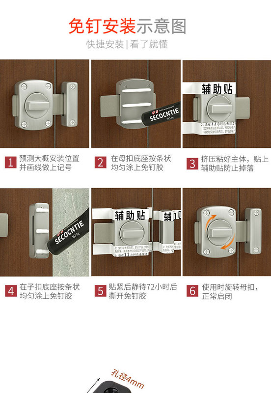 - Specifications: Large brushed latch [dual use for nail sticking]