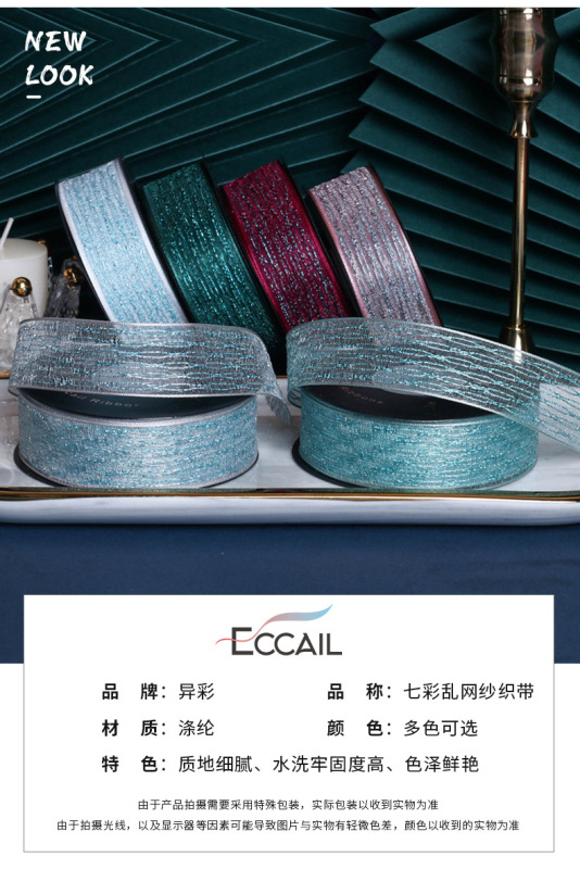 - Product Name: Rainbow Mesh Silver Filament Ribbon Net