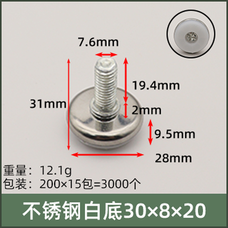 - Specification: Stainless Steel (White Base) M8X30X20