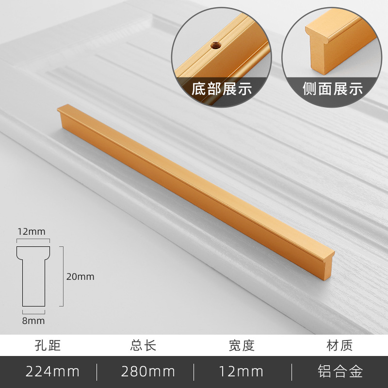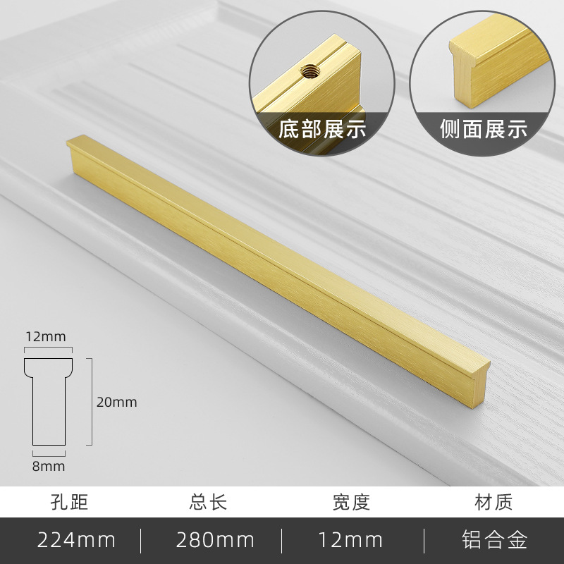 - Specification: Brushed Gold 224mm Hole Distance - 280mm Total Length