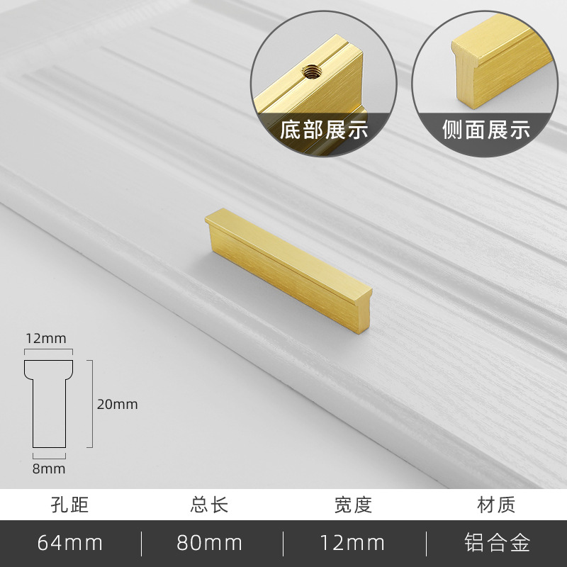 - Specification: Brushed Gold 64mm Hole Distance - 80mm Total Length