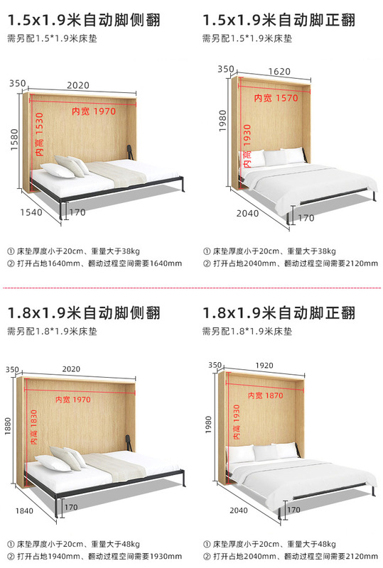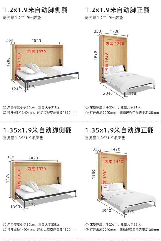 - Specifications: 0.9m/1.2m/1.35m/1.5m