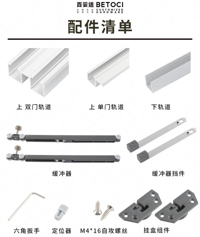 - Specifications: 3 meters double-door double-track track (upper and lower rails)