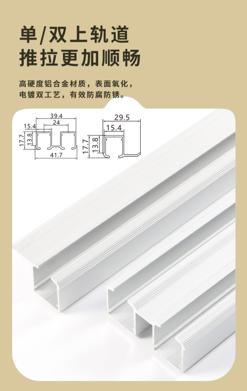 - Specifications: 1.5 meters double-door double-track track (upper and lower rails)