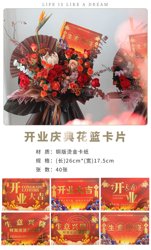 - 型號:開業大吉花籃卡片