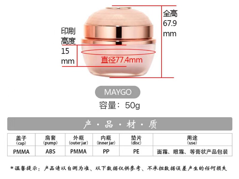 - 容量:50G膏霜瓶