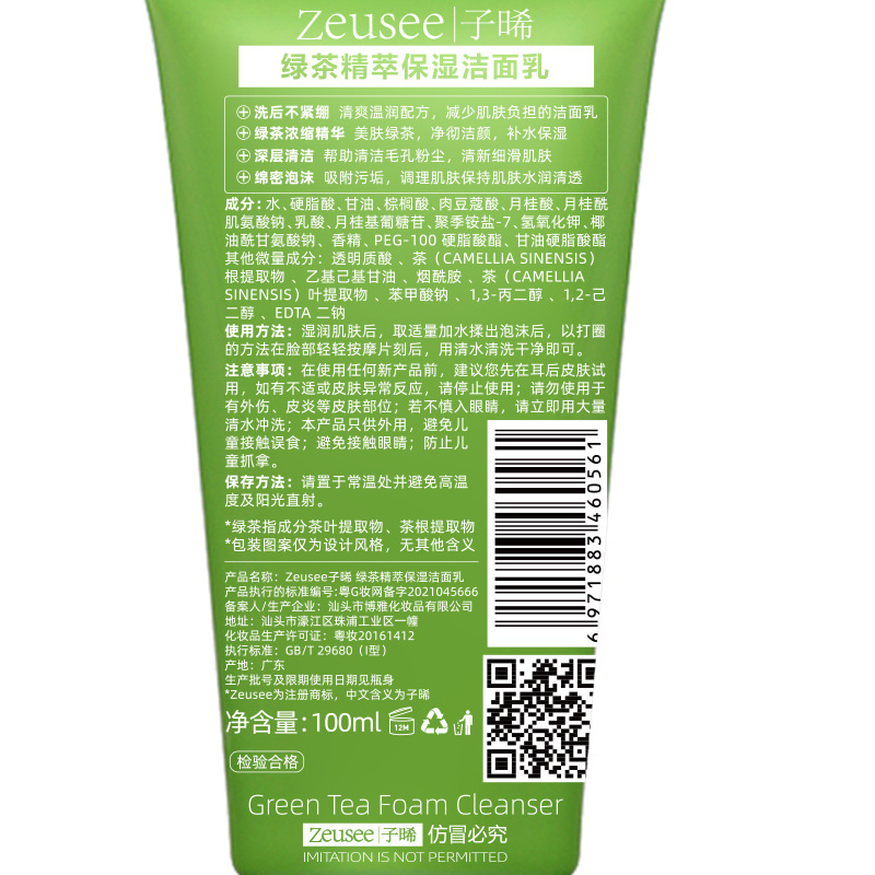 - Product specifications: Green tea moisturizing cleanser 100g