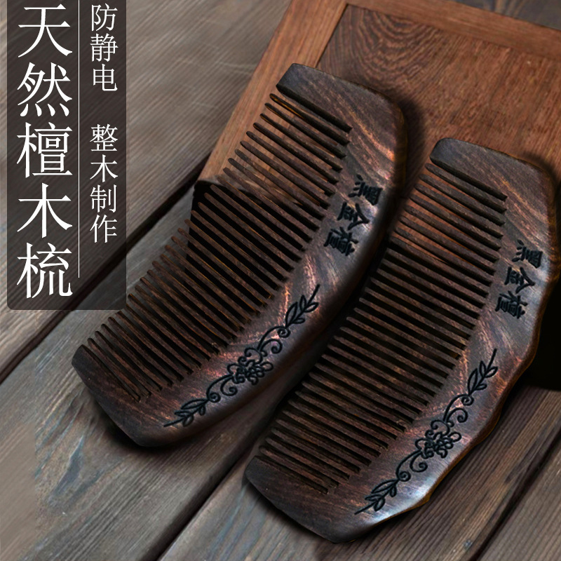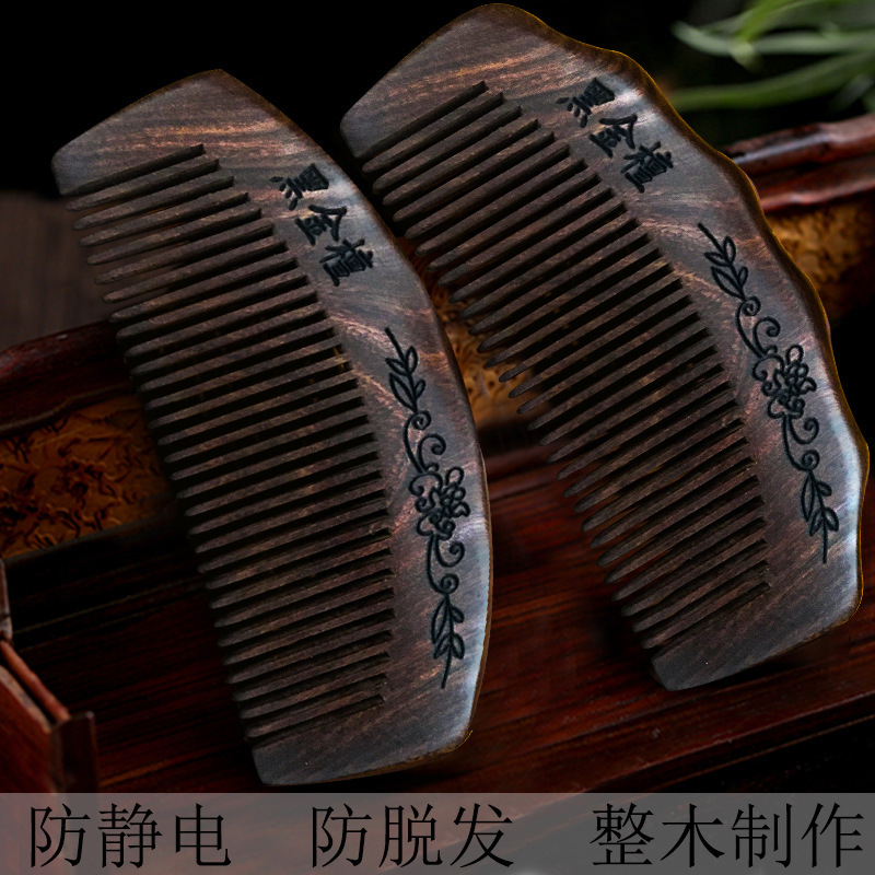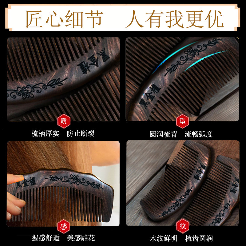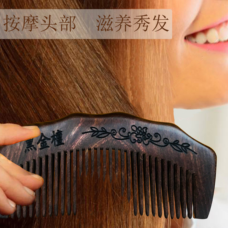 - Specification: Gold-threaded Sandalwood 16cm Half-moon Carved Fine-tooth Comb