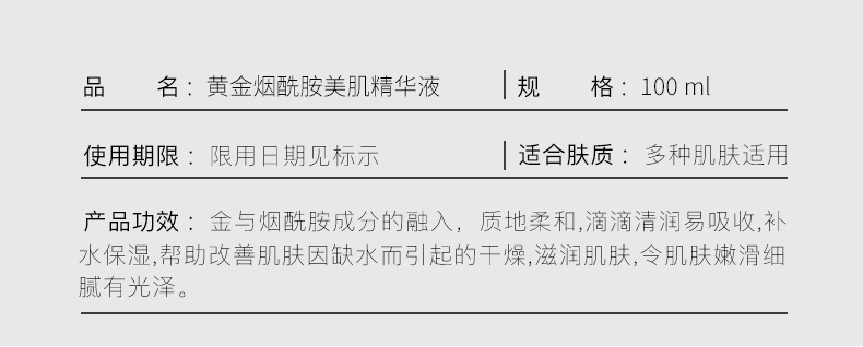 - 產品系列:色娜娜24K黃金煙酰胺精華原液系列