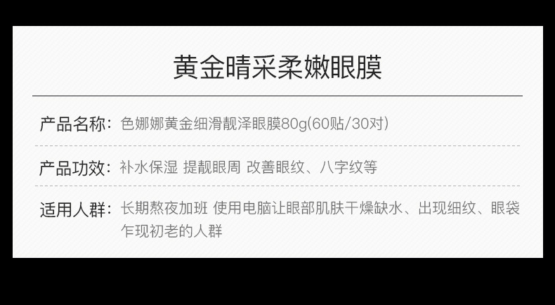 - Net content: Se Nana gold eye mask/30 pairs