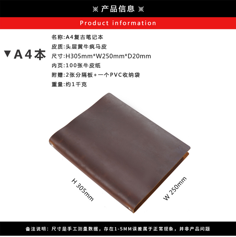 - Cover material: genuine leather