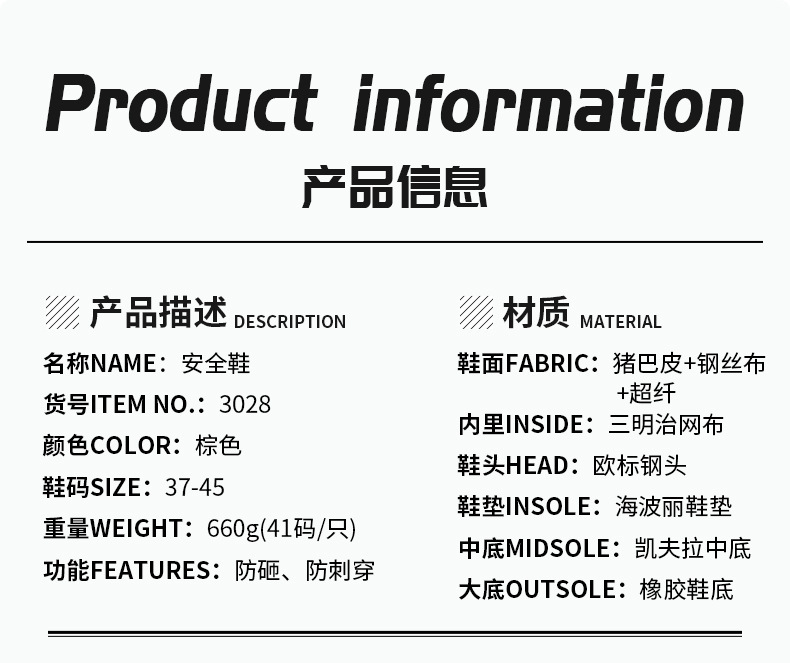 - 包頭材質:鋼包頭