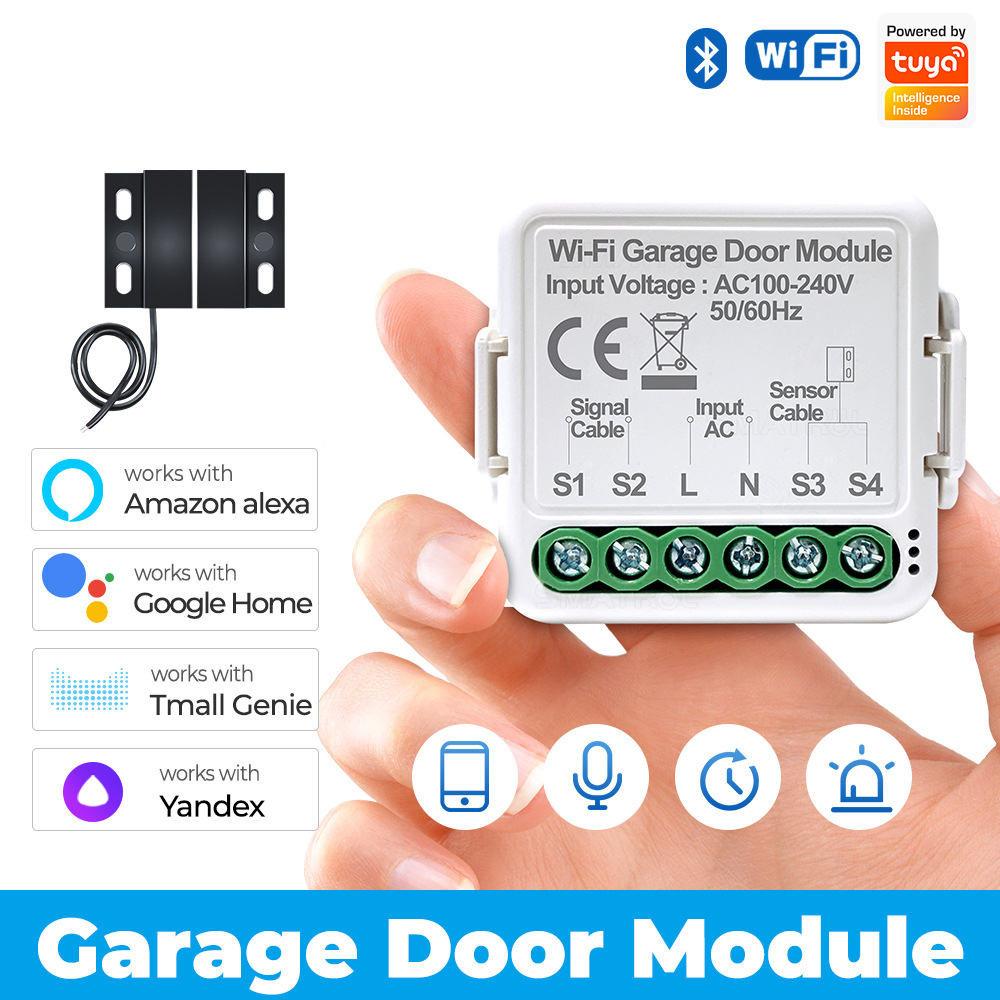 --【語音控制】與Amazon Echo和Google Home,Yandex,天貓精靈一起使用。讓您的車庫門變得智能,即使您不在現場也能打開或關閉門。