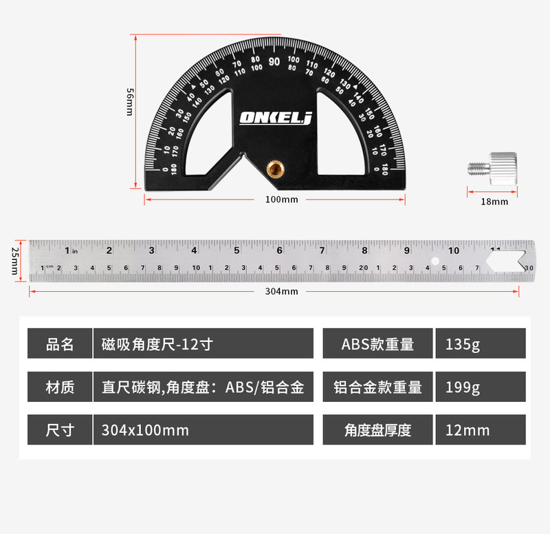 - Specifications: 12-inch magnetic angle ruler - aluminum alloy model